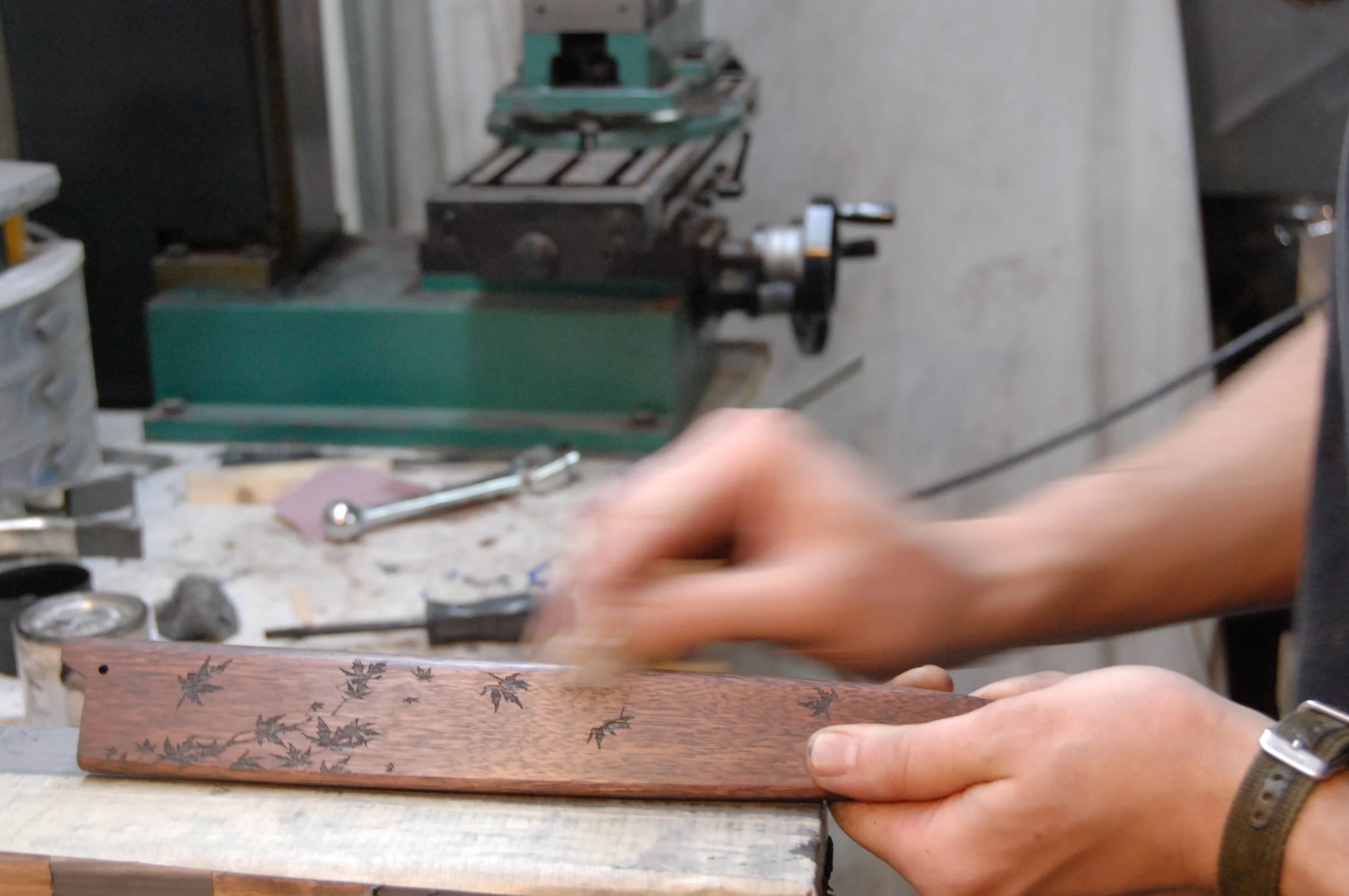Hand buffing the final finish on the saya.