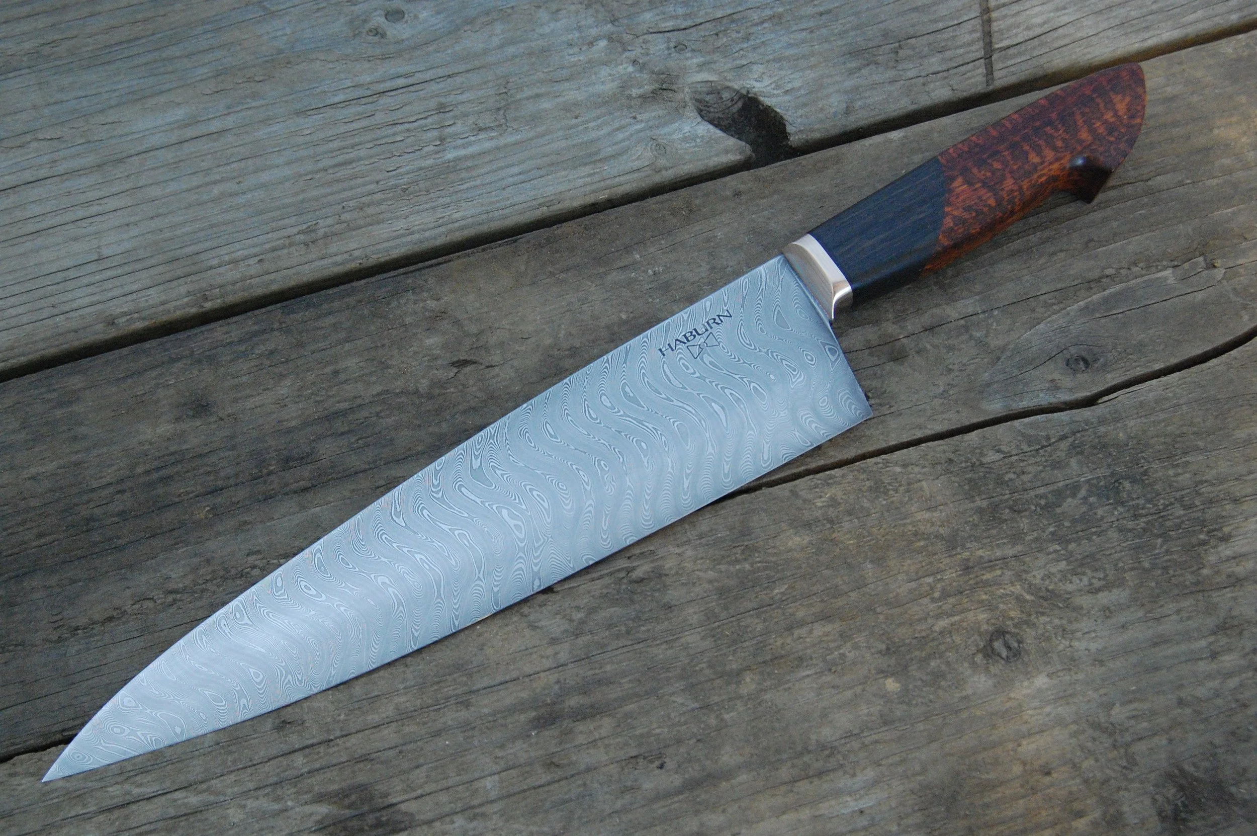 Damascus Yanagiba and Gyuto Set Oct 14 Written By Megan Rogers Wave damascus, mokume, 5720 year old bog oak, and snake wood for this set. Megan Rogers