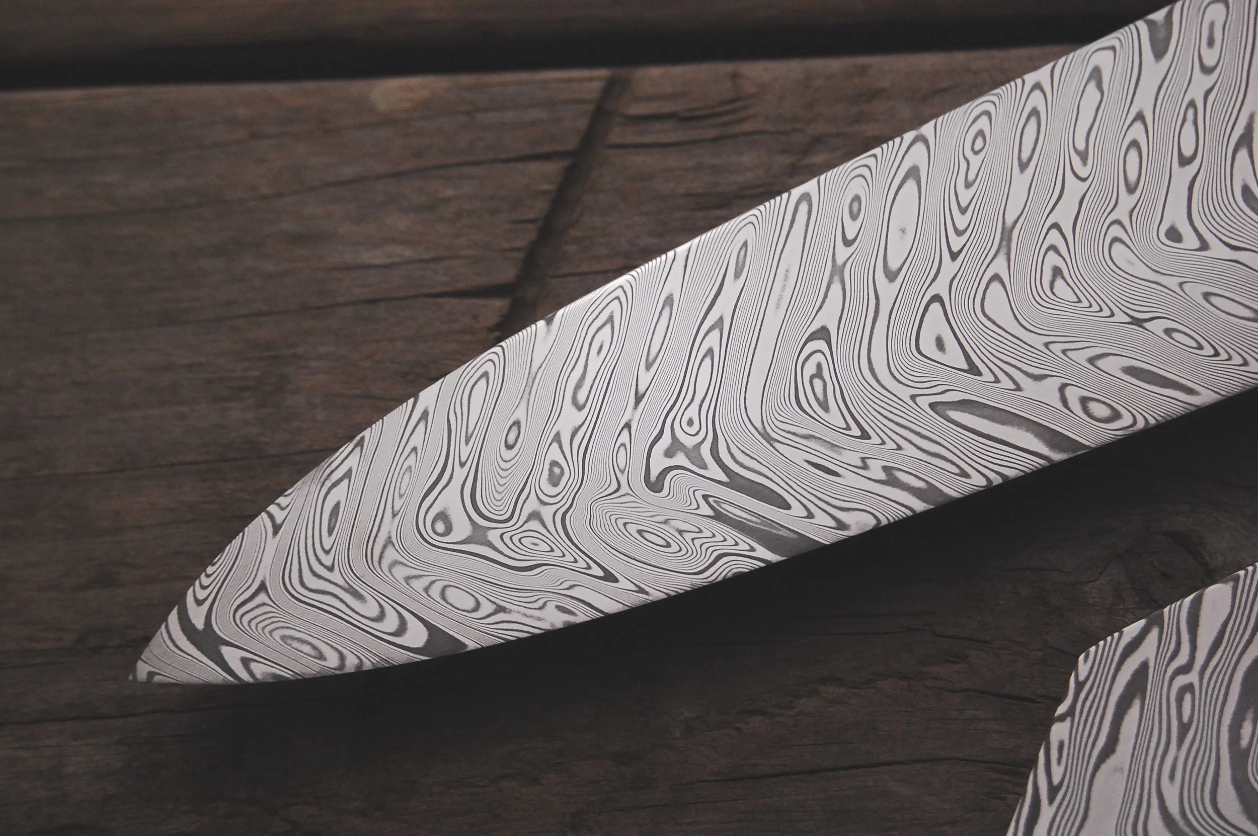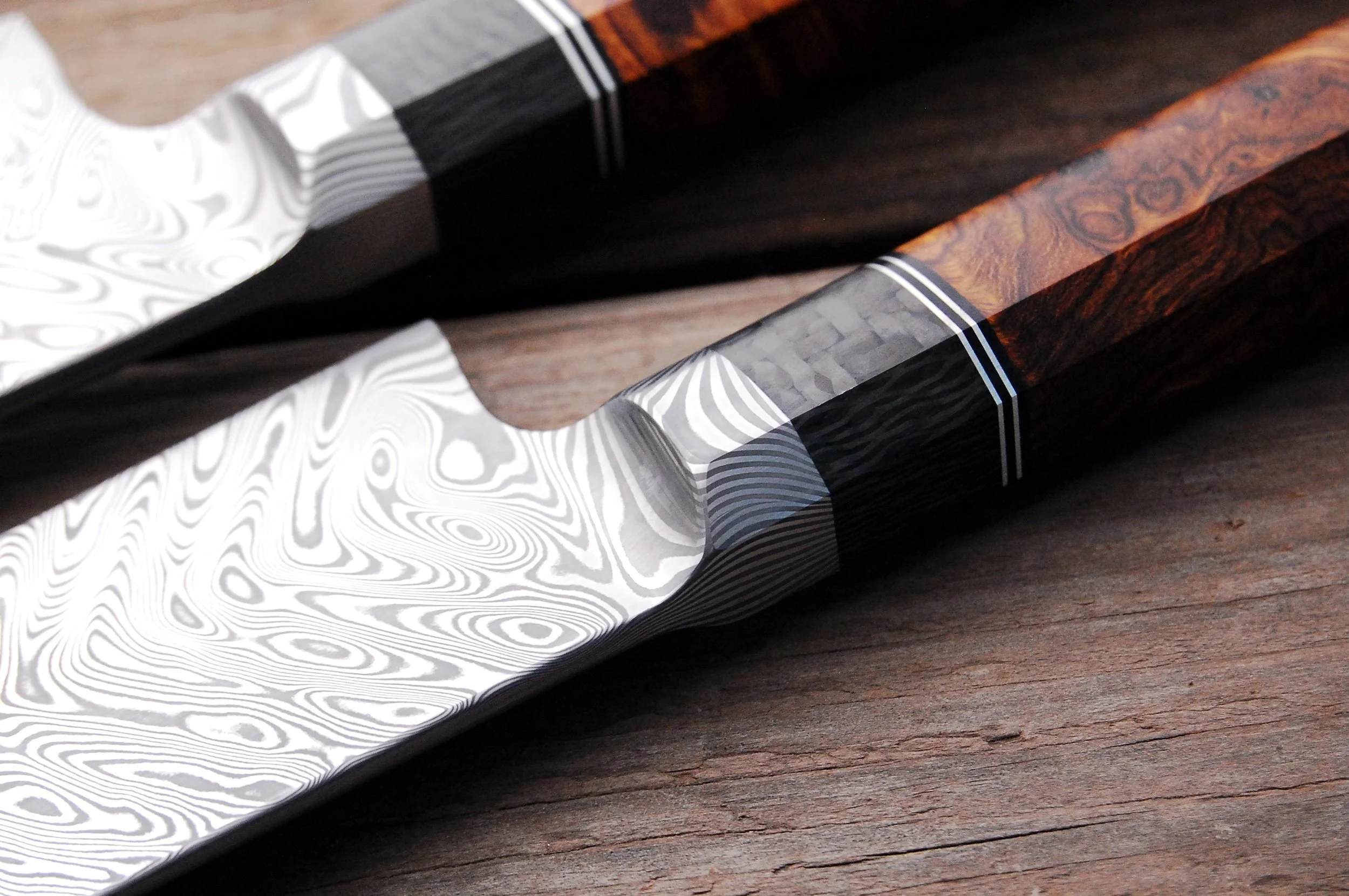 Custom Stainless Damascus Integral Gyuto and Bunka