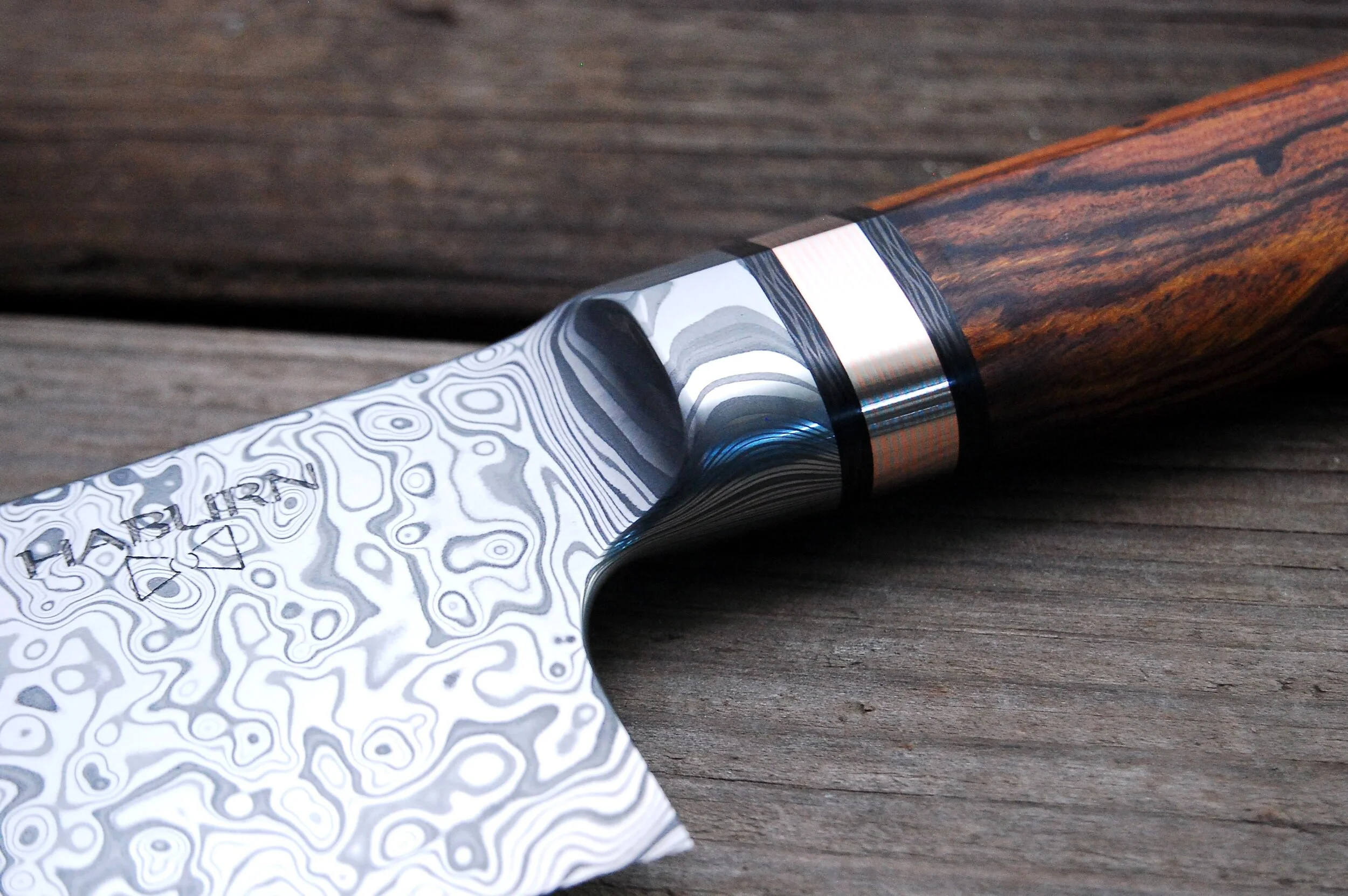 Custom Stainless Damascus Integral Gyuto Nov 15 Written By Megan Rogers Stainless damascus integral gyuto handled in carbon fiber, mokume-gane, and ironwood. Megan Rogers