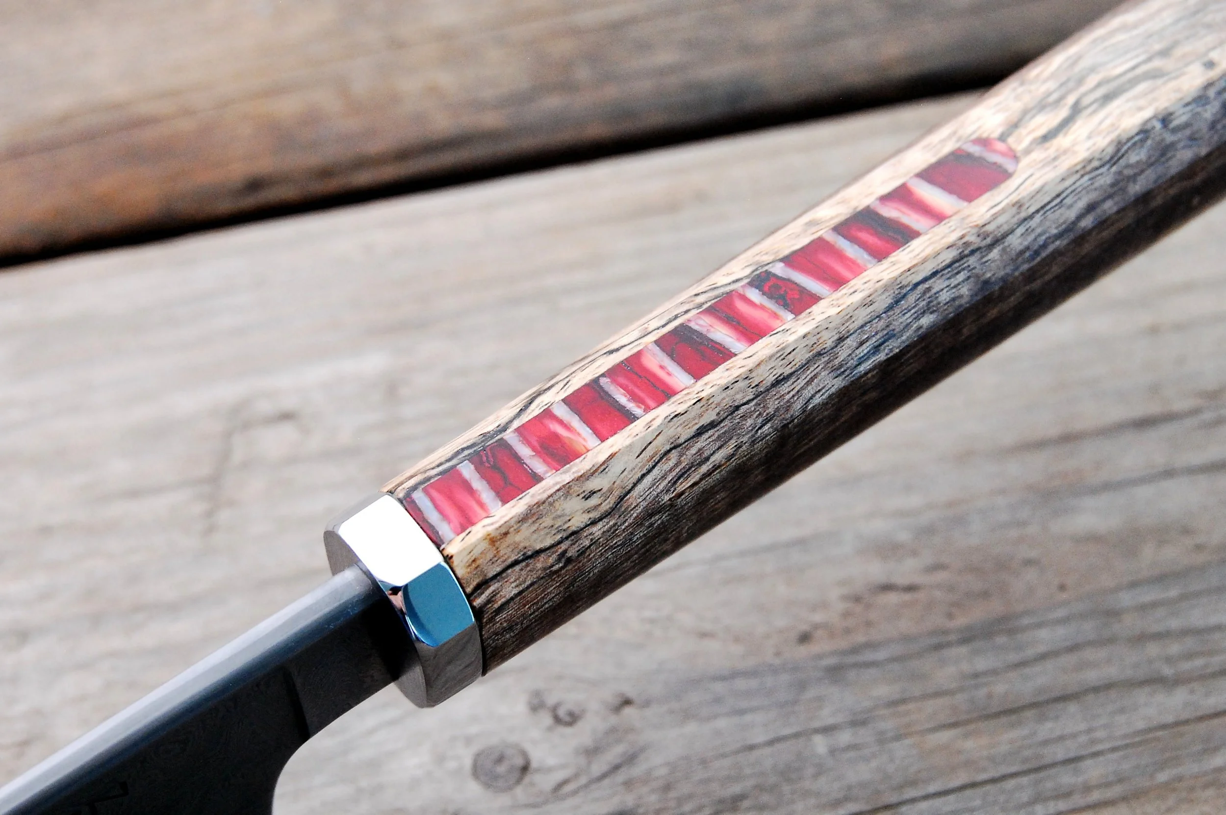 Damascus San Mai Gyuto for Eating Tools Aug 27 Written By Megan Rogers Damascus san mai gyuto handled in stainless two-tone koa with a mammoth tooth inlay. Megan Rogers