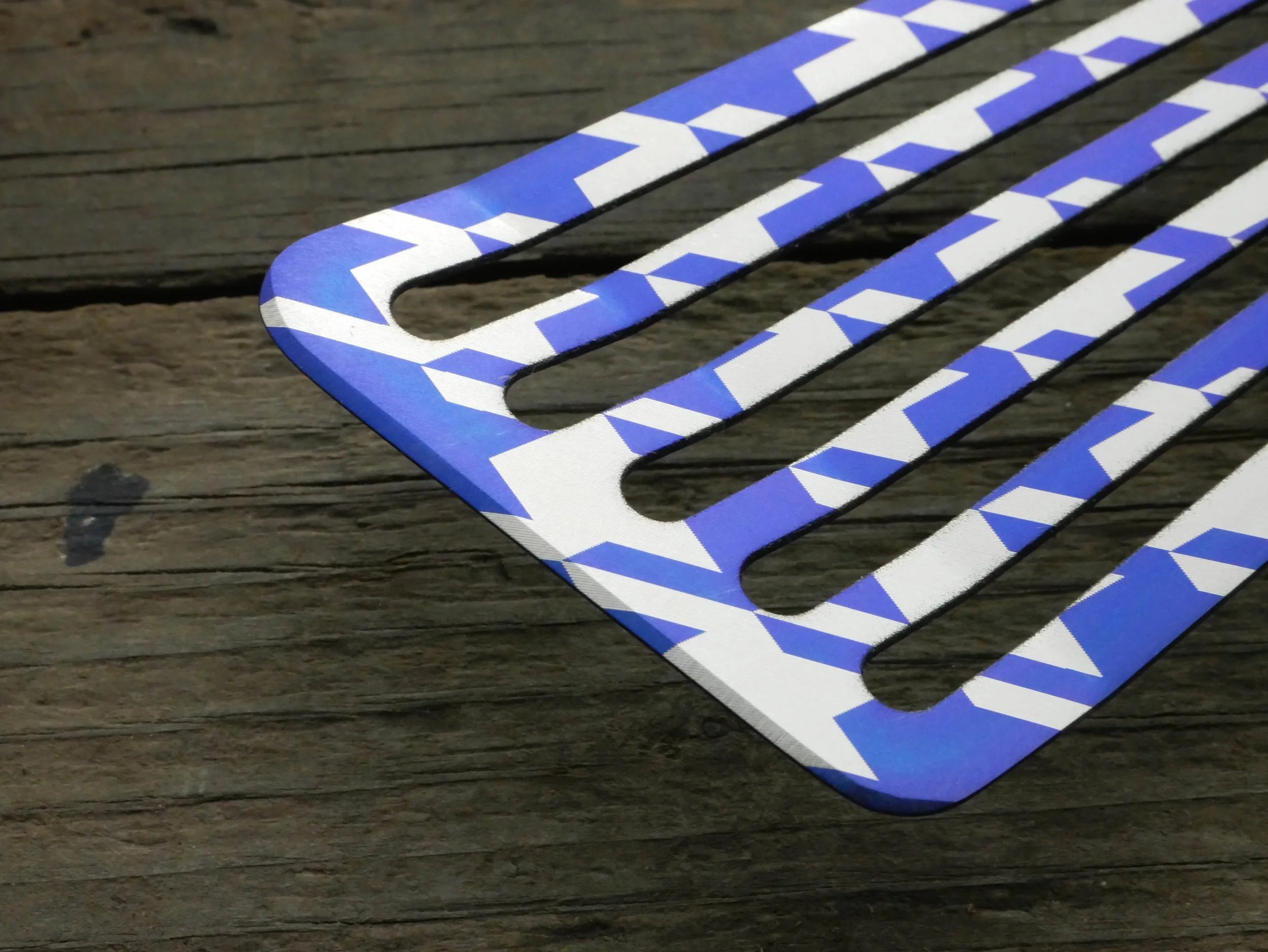 -Thick aerospace grade titanium .125in  x 6.5in  handle fastened with brass solid rivets