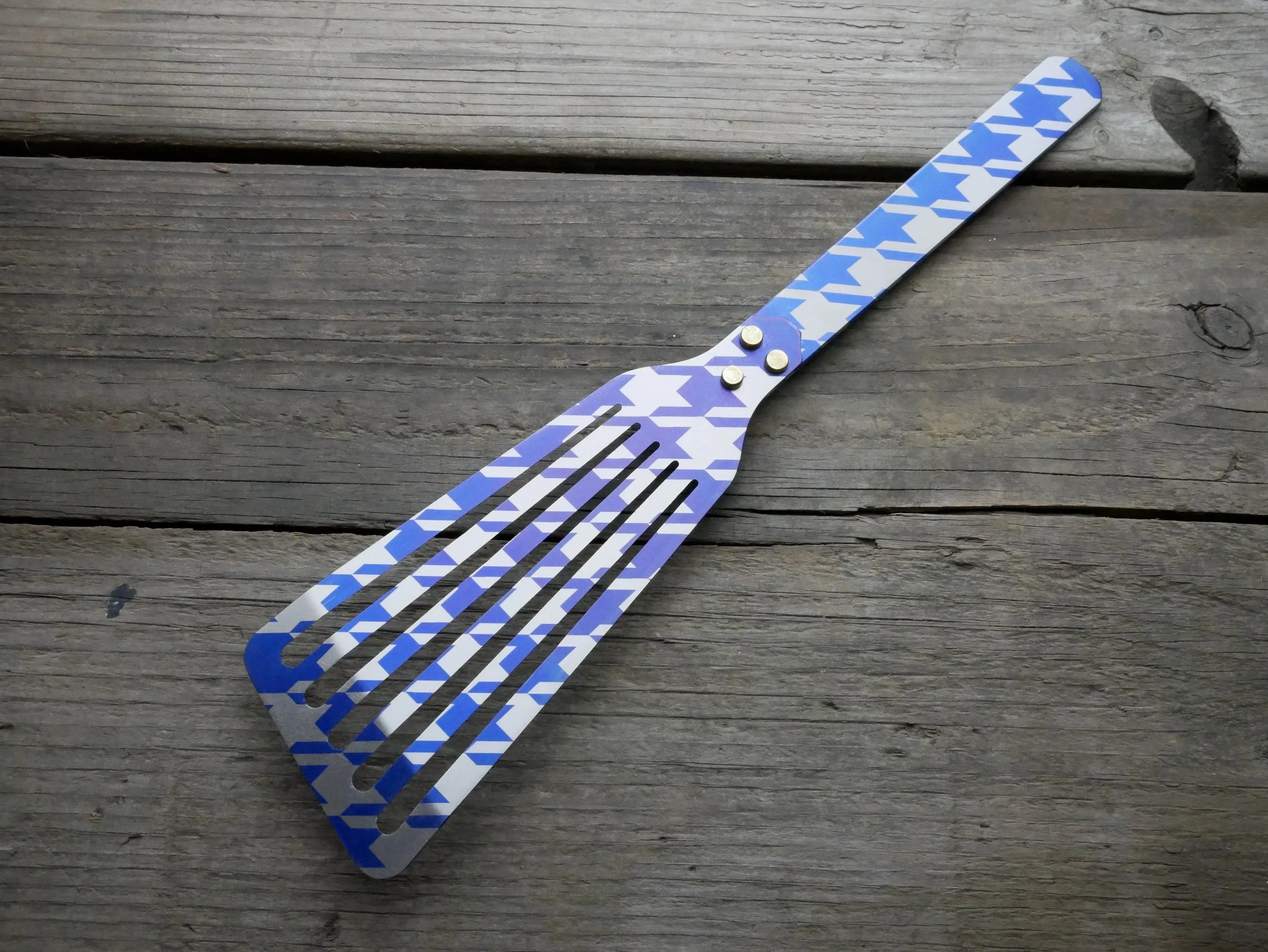 Titanium offers superior ductility over typical spatula metals prone to breakage. The thin gauge titanium provides a flexible companion for spatula tasks while the wide grip delivers comfort for hours of use.